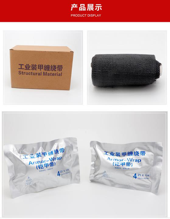 工業(yè)裝甲纏繞帶,在國內(nèi)又稱裝甲帶、鎧裝帶、玻璃纖維工業(yè)繃帶。工業(yè)裝甲纏繞帶是由安徽偉創(chuàng)聚合材料科技有限公司自主研發(fā)的技術(shù),將特種玻璃纖維編織成高強(qiáng)度、高彈性結(jié)構(gòu)的織物,然后在編織帶表面涂覆水固化高分子化合物而制成的一種玻纖制品。它具有遇水快速固化、操作簡便和應(yīng)用范圍廣等特點,固化后形成的結(jié)構(gòu)物彎曲強(qiáng)度和拉伸強(qiáng)度高、無毒無味無刺激、耐水耐腐蝕。由于其使用方便,便于攜帶,并可任意塑形,近年來已越來越多地應(yīng)用到電力、化工、通信等多個領(lǐng)域。主要用于1-35kV冷縮電纜中間接頭保護(hù),尤其是管道修補(bǔ)、特殊環(huán)境場合支架機(jī)構(gòu)維修、防護(hù)、防腐蝕、電纜密封拼接和高溫下使用的理想材料。